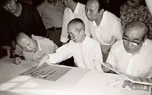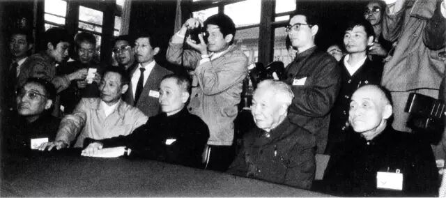 1983年西泠印社80周年大庆学术研讨会一隅(前排右起陆抑非、顾廷龙、徐邦达、方去疾、钱君匋)