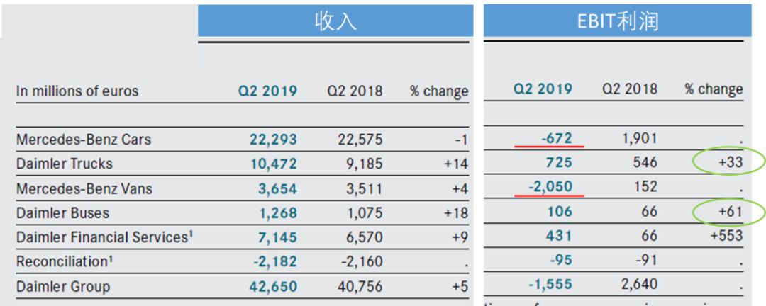 除此以外,戴姆勒在全球多个市场遭遇不景气,新车型销量爬坡遇到困难,乘用车和商务车业务亏损,虽然其他三个较小规模的业务板块--卡车、公交车和金融服务,实现了收入和利润的双增长,但是,乘用车规模占整个集团收入的一半以上,商务车的利润亏损更加严重(20.5亿欧元)。