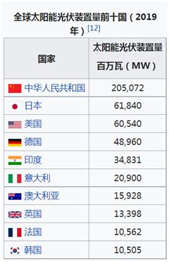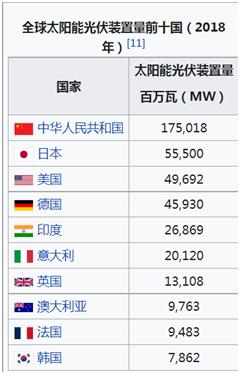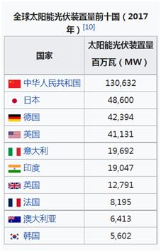 这是维基百科为统计从2017年到2019年全球光伏产业各国装置量所做的图表。