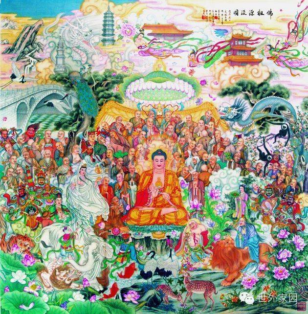 《华严经》中指出,一个宇宙的单元分为二十层,我们的娑婆世界与西方极乐世界都同在第十三层,而每一层都有无尽的虚空所围绕。所谓“宇宙非宇宙,时空非时空,尽入虚空无尽藏,虚空无尽广大,唯其心性而至焉”。