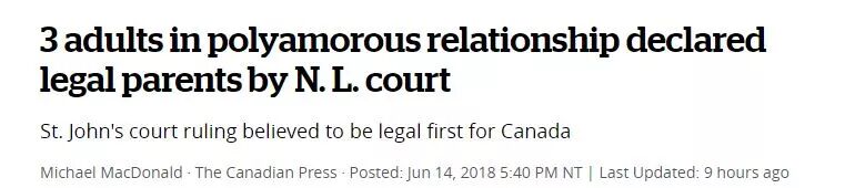 现在这个三角关系的家庭被纽芬兰省法院宣判合法,是加拿大历史上第一次。