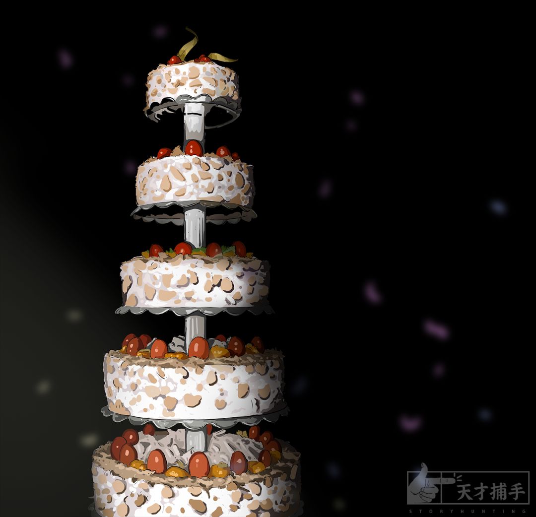 同学的父母准备了一个六层的大蛋糕,周围的人拍手唱《生日快乐》歌。何芳东从没吃过蛋糕,不知道奶油这么香。