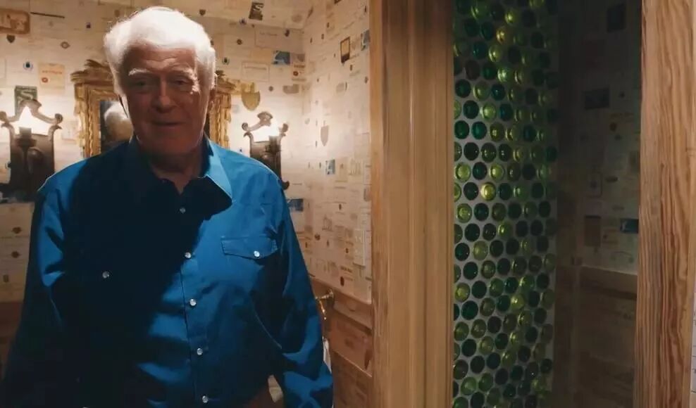 他专门搞个富丽堂皇的拱形酒窖来安置自己的4.3万瓶酒,酒窖的材料和工匠都是是专门从欧洲请来的。为了不浪费喝剩下酒瓶和瓶塞,他还设计了一个葡萄酒厕所,用酒瓶砌成墙壁,用酒标和木塞制作天花板。