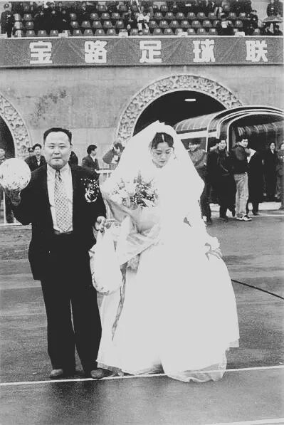 1998年,他把婚礼搬到了新华路体育场举行。这场史无前例的球场婚礼,还上了央视《足球之夜》。