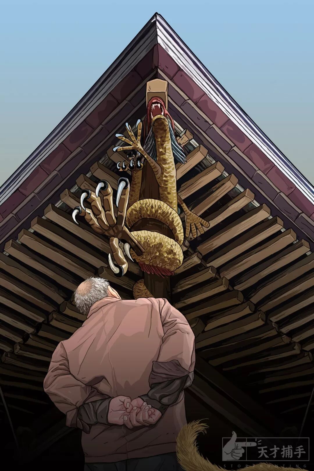 昏暗的光线下,小庙里的巨龙伸出硕大无比的爪子,几个狰狞的恶神怒目而视,居高临下地盯着人间的恶人。
