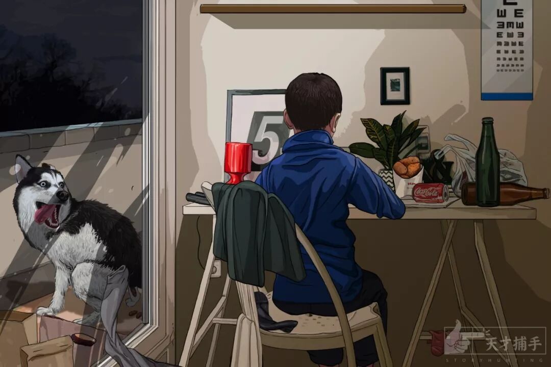 房子三室两厅,格局新潮,装修鲜艳。但明显很久没人打理,一条摇头晃脑的哈士奇拉了几泡屎在阳台上。