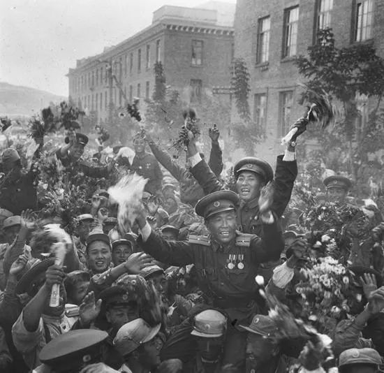 1958年,中国人民志愿军全部撤离朝鲜。这是朝鲜人民欢送中国人民志愿军回国的场面。