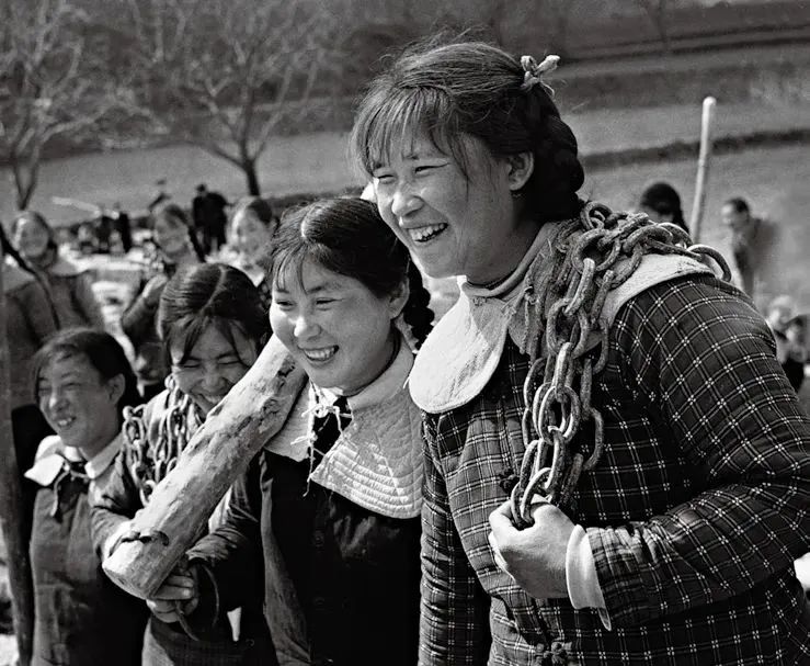 照片拍摄于1962年,画面中的4个姑娘身着粗布衣,身背铁链,肩扛木桩,笑容淳朴灿烂。这张照片是众多反映当年红旗渠建设者影像中最具传播力、影响力、代表性的现象级作品,生动再现了劳动人民的时代精神风貌,成为红旗渠精神的标志性影像。