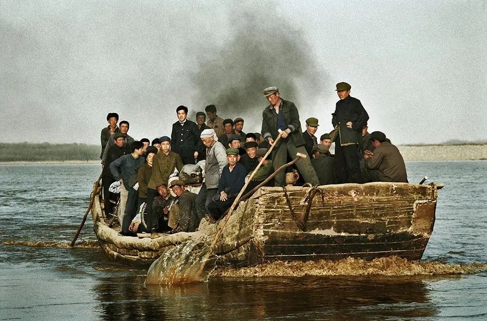 1980年,黄河中原摆渡的农民。
