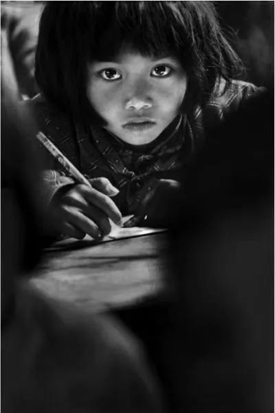 照片拍摄于1991年,8岁的苏明娟趴在课桌前写作业。她望镜头时的那双大眼睛,给人留下深刻的印象。这张“我要上学”的照片,引发人们对失学儿童的关注,成了希望工程的宣传标志。