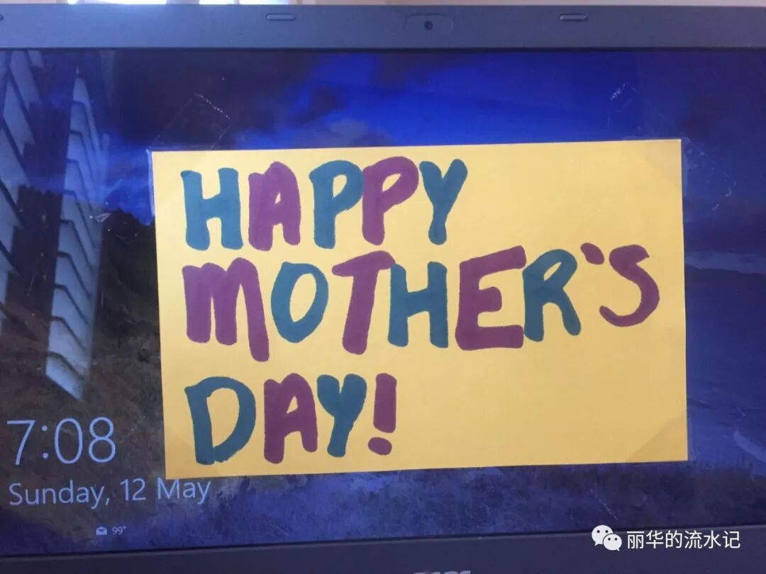 我睡眼惺忪地跑去先开电脑,一打开,屏幕上贴着:“母亲节快乐”。