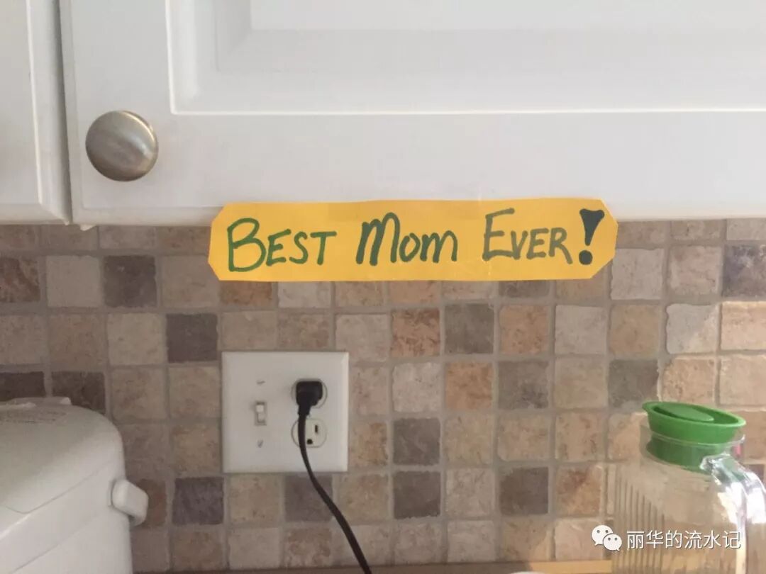 放杯子的柜子上,贴着:“史上最好的妈妈”。