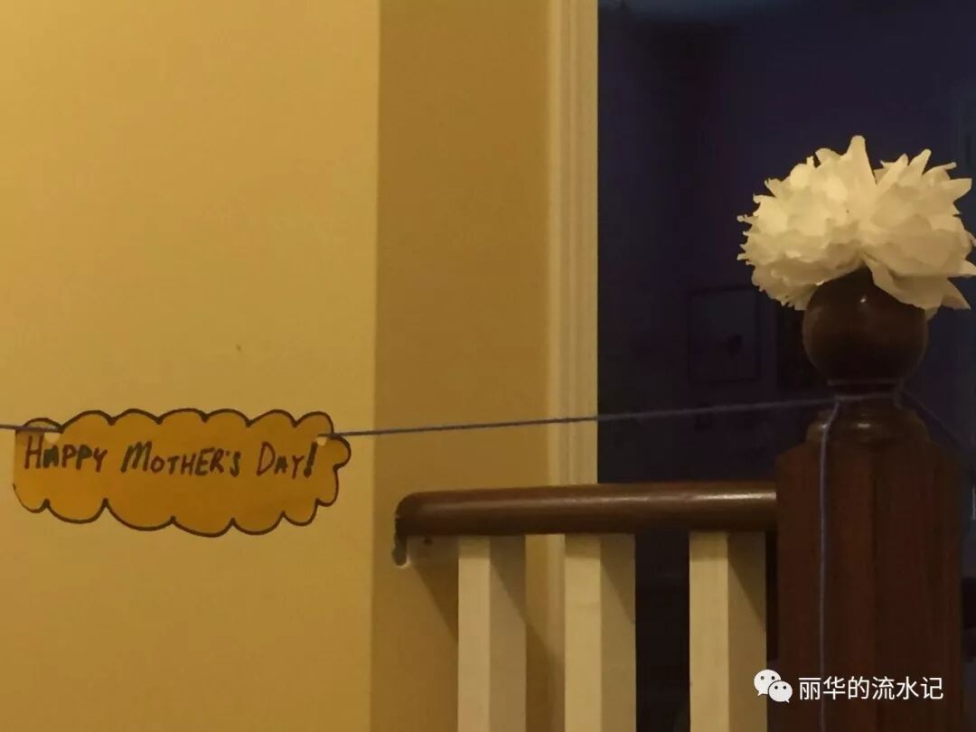 上面有一张云朵形状的纸片,写着“母亲节快乐”。
