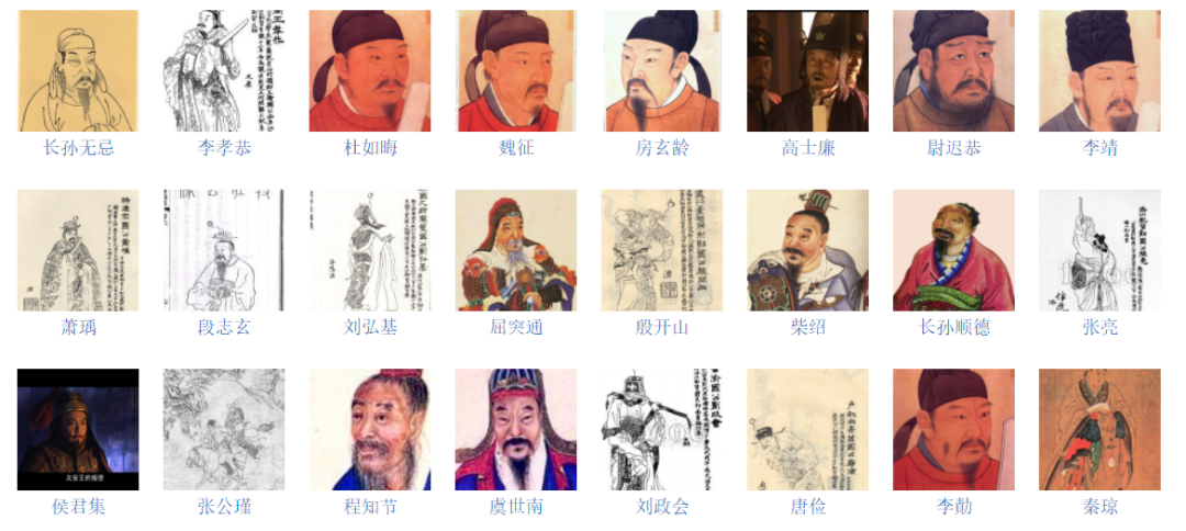 画像上,栩栩如生地站立着24位在大唐开国和贞观之治中,曾浴血奋战过,曾鞠躬尽瘁过的开国元勋,建国能臣。这个凌烟阁,既是英雄纪念阁,也是大唐先进工作者的光荣榜。