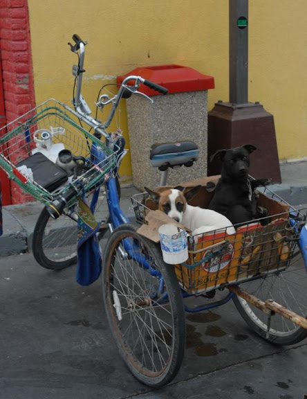 自行车设计得挺绝。前面拉狗,后面拉破烂。