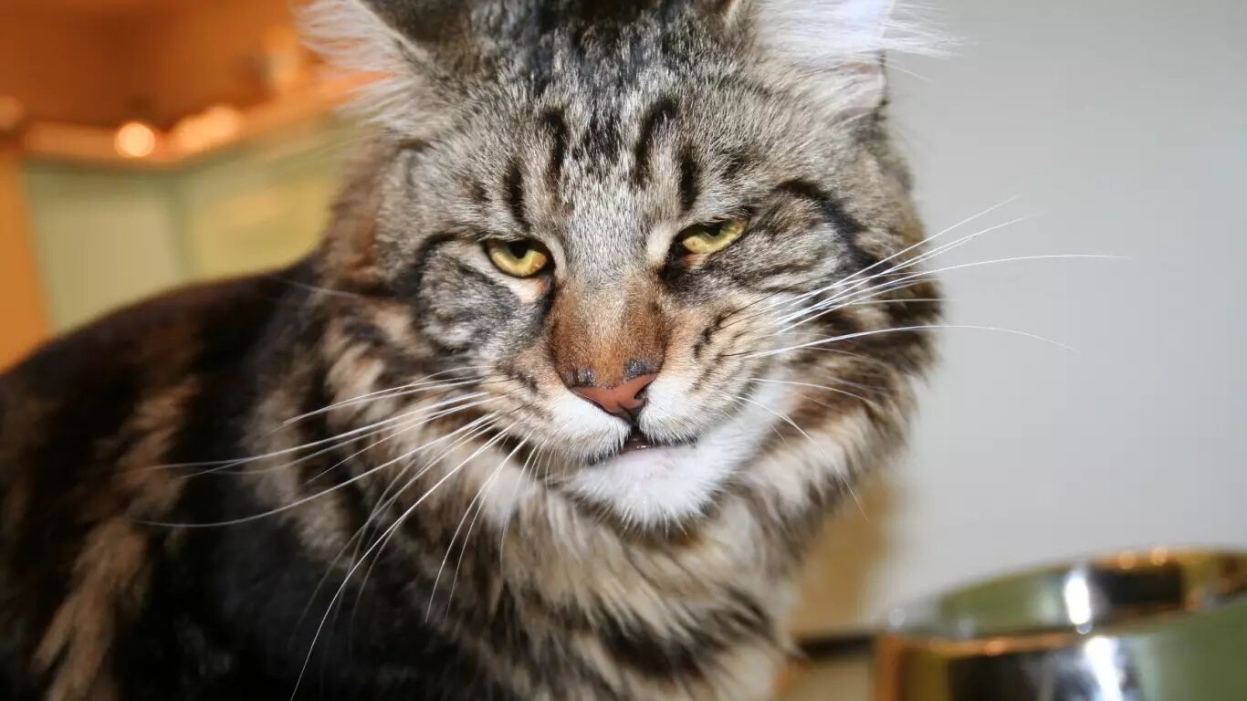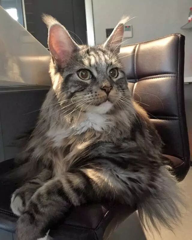 缅因猫(Maine Coon),又叫缅因库恩猫,是家猫中最大的一个品种。这种猫是北美本土一个非常古老的长毛猫品种,原产于美国缅因州。人们培育缅因猫的可不是把它们当成“主子”对待的——因为在捕鼠方面天赋异禀,缅因猫在当地一直是一种工作猫,负责看管粮仓。