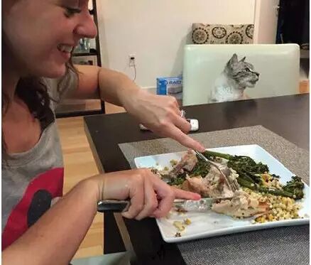 @阿怪是只羊咩咩:即使猫咪眼神再渴望,也不能给它吃这些经过各种调味料烹调的食物,那对它的身体十分有害