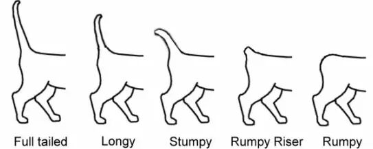 同时,并不是所有的马恩猫都没有尾巴,实际上马恩猫根据尾巴的不同分为四种:从头到脚摸下来完全没阻力的无尾(rumpy)、 稍稍有一小段尾尖的小短尾(rumpy riser)、 中间长度的小翘尾巴(stumpy),比普通猫稍短的长尾马恩猫(longy)。 但是 rumpy riser 们随着年龄的增长,小翘尾巴会被脂肪垫包裹,渐渐地铲屎官们就摸不到啦!