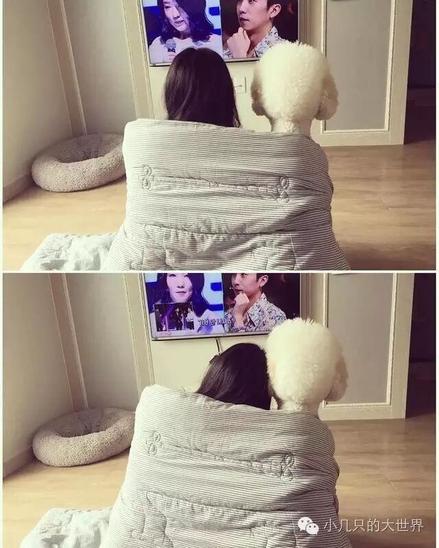 披着同一床被子,一起看电视真的好浪漫啊~